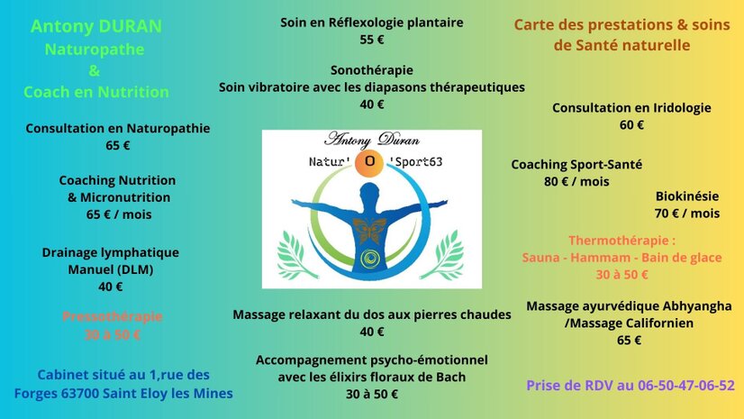 Voici les tarifs de l'ensemble des prestations et soins de santé naturelle holistique